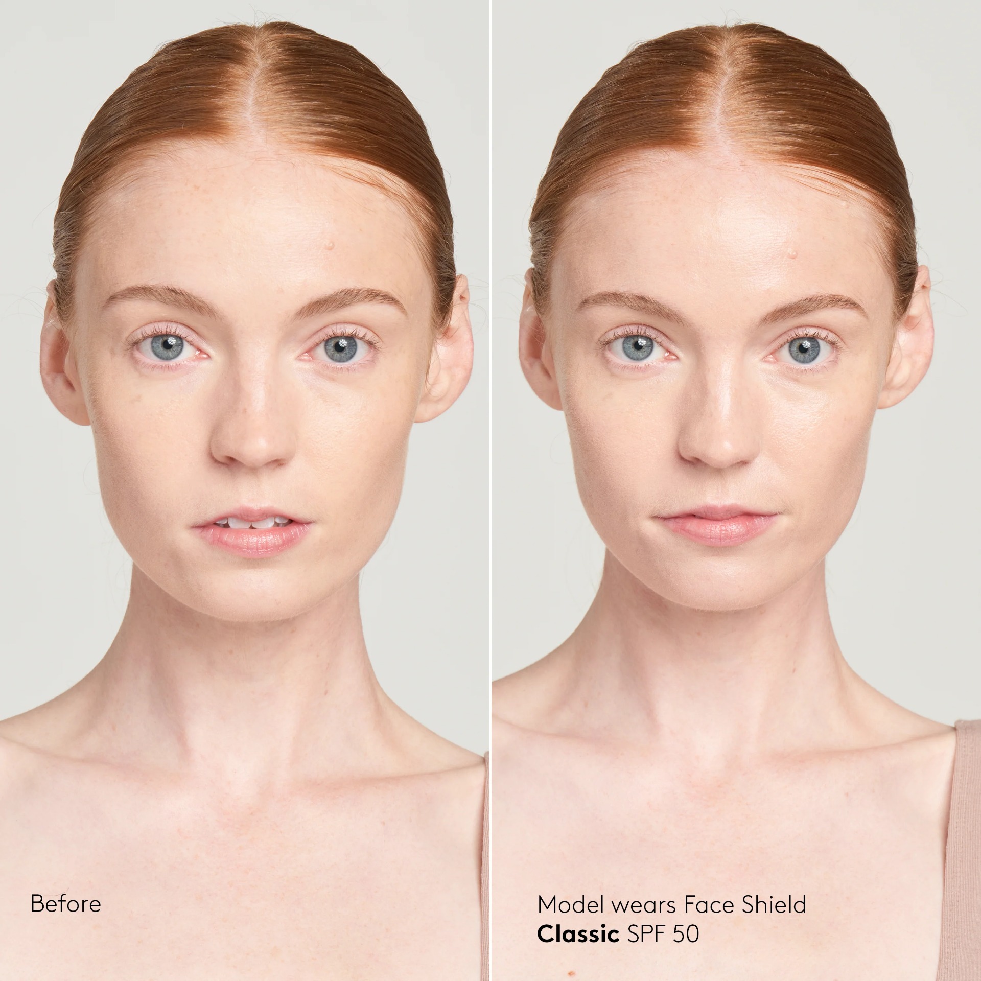 Colorescience Face Shield SPF 50 Classic er en lett, mineralbasert solkrem beriket med antioksidanter som gir bredspektret beskyttelse mot både UVA- og UVB-stråler. Formulert med 100 % sinkoksid som legger seg som en fysisk barriere på huden og beskytter effektivt mot solskader.